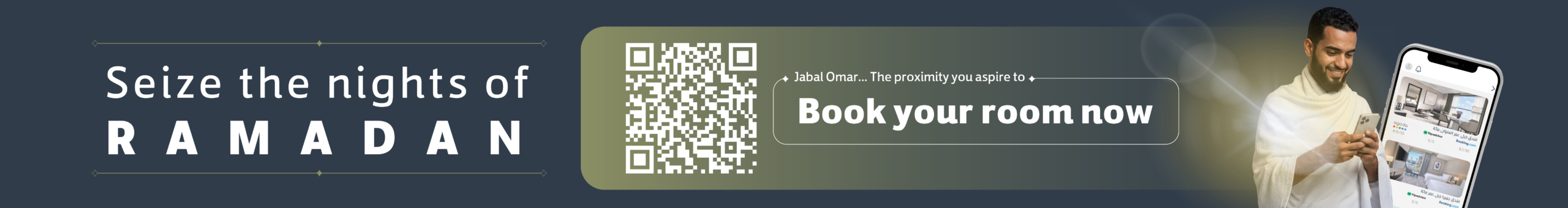 Jabal Omar The Address Makkah Hotel, 5-star, was opened in the year 1445 AH, located just 7 minutes away from the Holy Mosque. It consists of two towers connected to the world's highest suspended mosque. The hotel comprises 1,268 rooms, 212 hotel suites, 4 penthouses, and can accommodate up to 3,710 guests daily. Additionally, it features 4 restaurants, 3 lounges, and 7 meeting rooms.